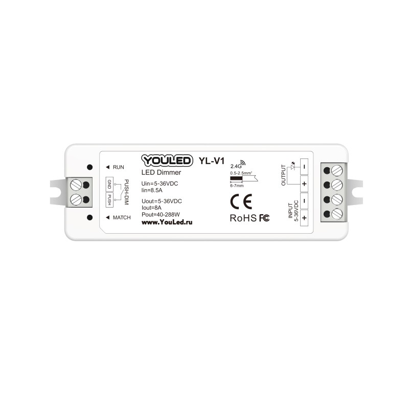 Контроллер, 1 канал до 192 Вт, диммер YouLED YL-V1 dim