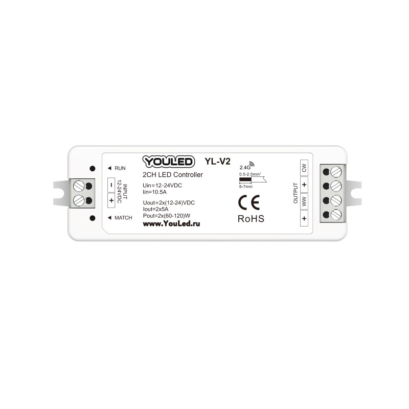 Контроллер, 2 канала по 120 Вт, YouLED YL-V2 ССТ