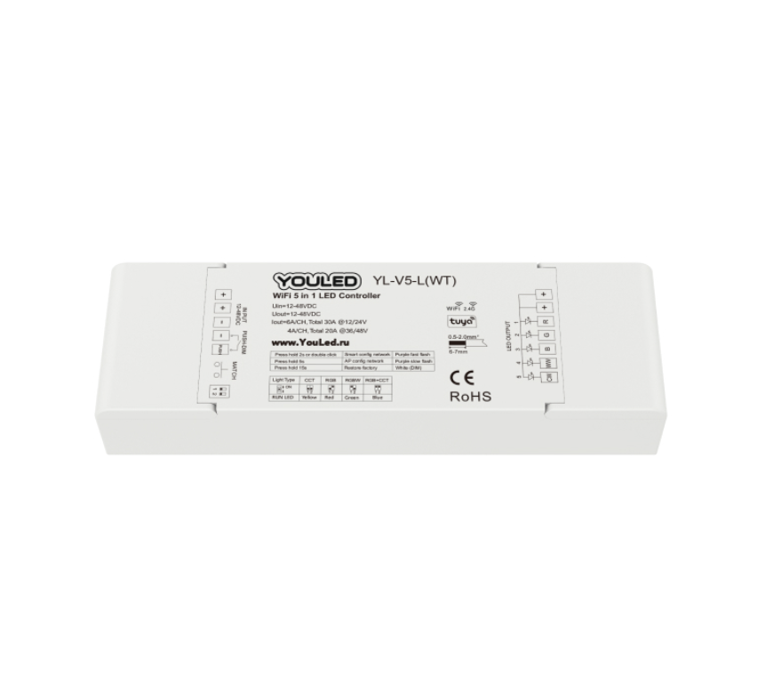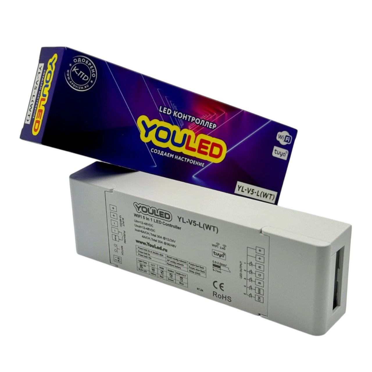 Контроллер, 5 каналов по 144 Вт, RGB/RGBW/RGB+ССТ/ССТ/одноцв., YouLED YL-V5-L (WT) Wi-Fi (ПискаНет)