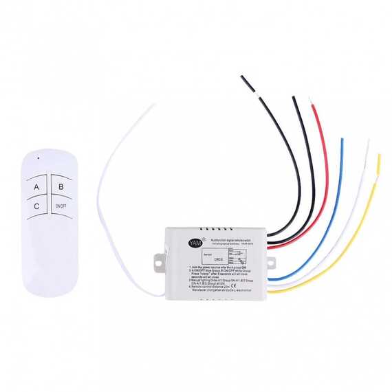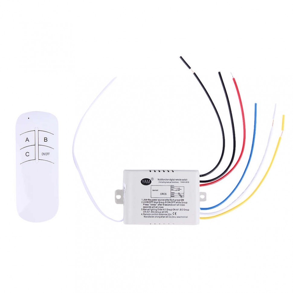 Предназначен для удаленного управления осветительными приборами. Контроллер-приемник подключается в электрическую цепь к светильнику (группе светильников) или перед блоком питания светодиодной ленты и играет роль управляющего модуля, принимая команды с пульта и передавая их в систему освещения.