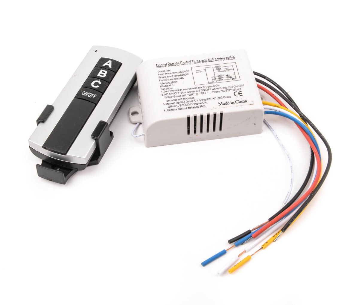 Предназначен для удаленного управления осветительными приборами. Контроллер-приемник подключается в электрическую цепь к светильнику (группе светильников) или перед блоком питания светодиодной ленты и играет роль управляющего модуля, принимая команды с пульта и передавая их в систему освещения.
