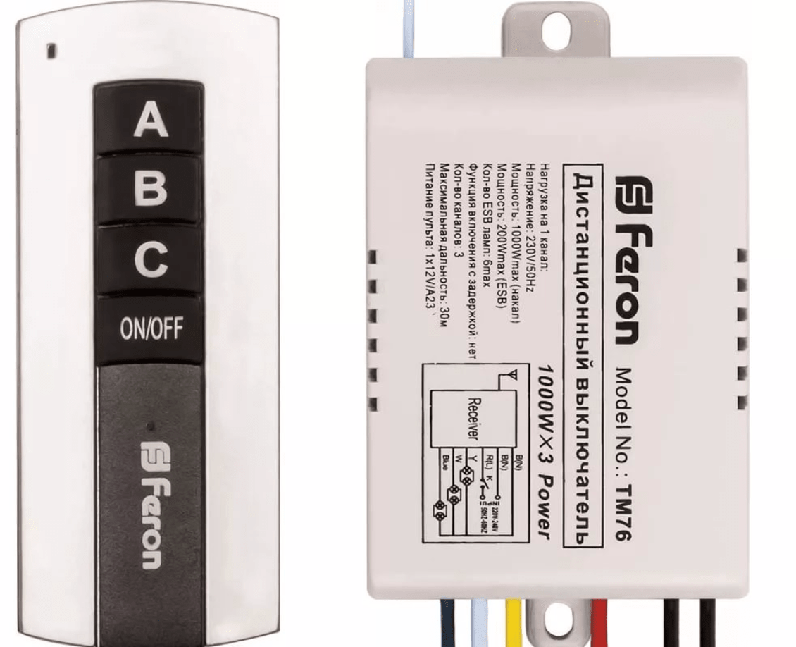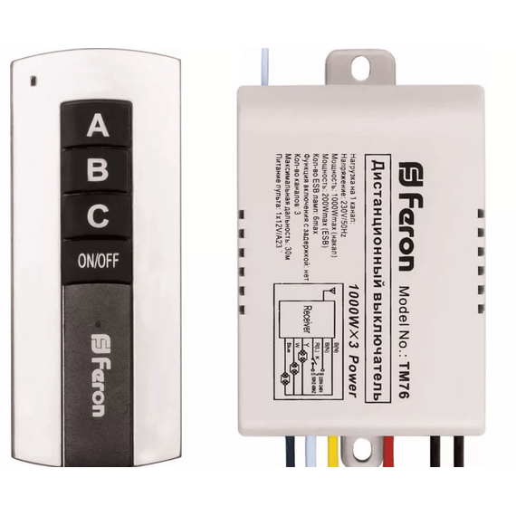 Выключатель дистанционный 230V 1000W 3-хканаль 30м, TM76