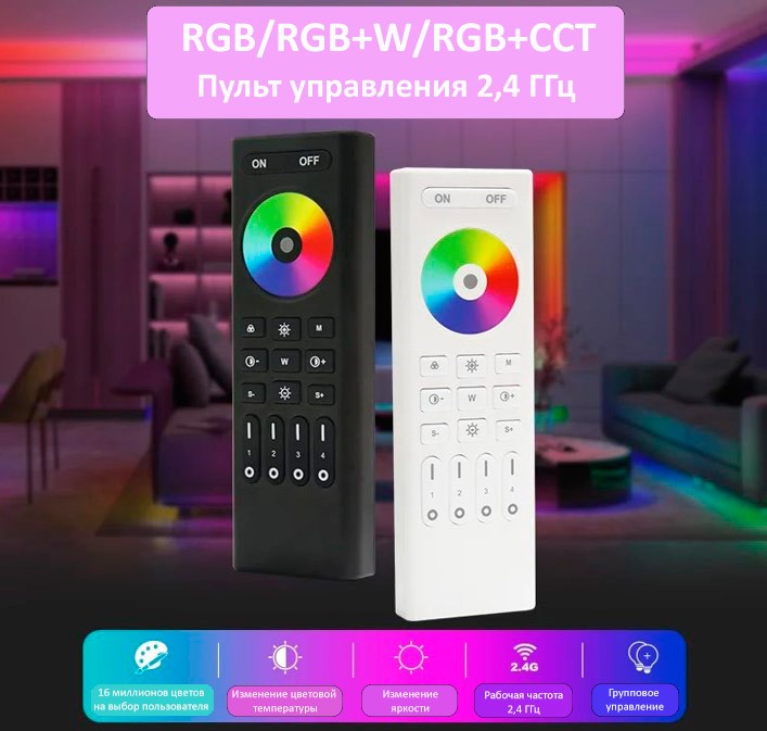 Пульт RC03RFB ЧЕРНЫЙ RGB/RGBW/RGBCCT на 4 зоны для контроллеров LP-C03RF и LP-C03W