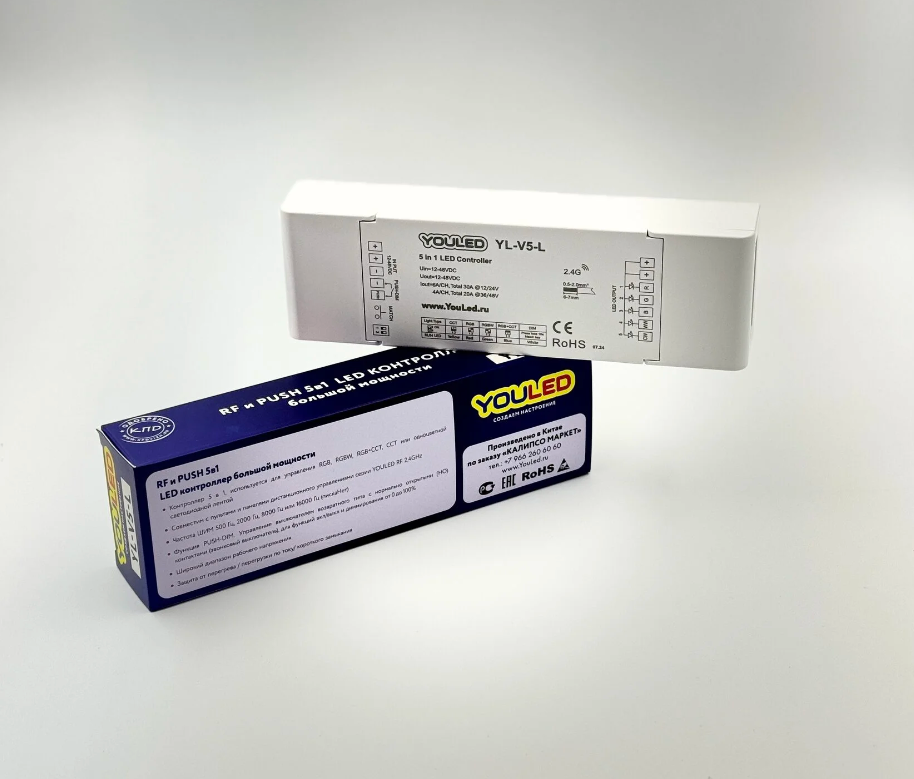 Контроллер, 5 каналов по 144 Вт, RGB/RGBW/RGB+ССТ/ССТ/одноцв., YouLED YL-V5-L (ПискаНет)