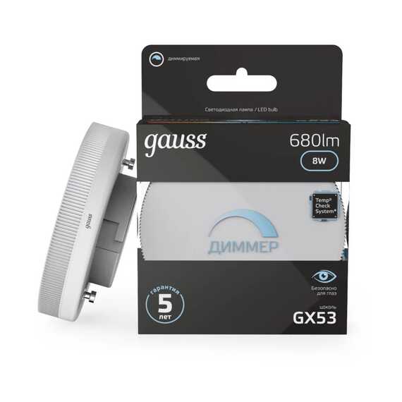 Лампа 8W 4100K Gauss ДИММЕР GX53