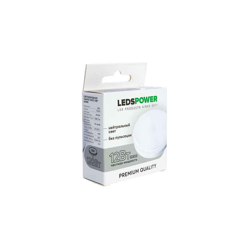 Лампа LEDS POWER GX-53 12Вт 4000К 1080ЛМ