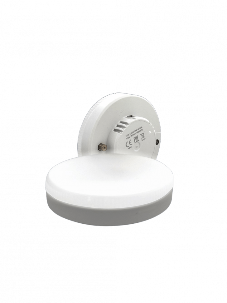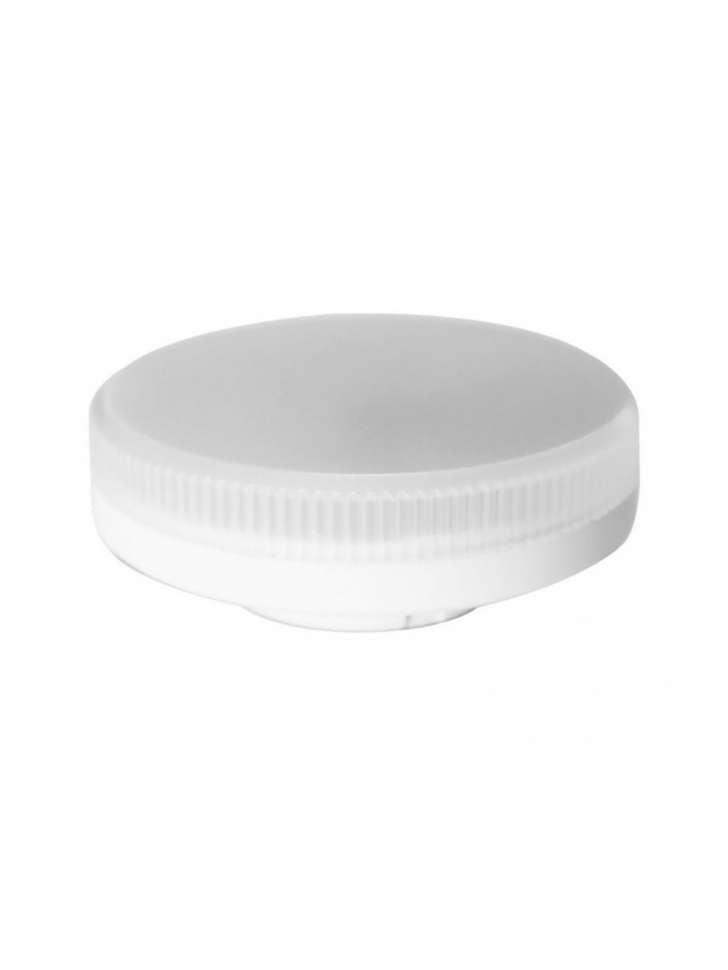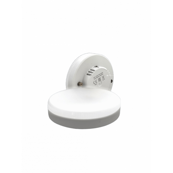 Светодиодная лампочка в форме таблетки с цоколем GX53 обладает мощностью в 10 Вт. Цветовая температура — 5000К (нейтральный белый свет). Изделие рассчитано на использование в сети с переменным напряжением в 175-265В.