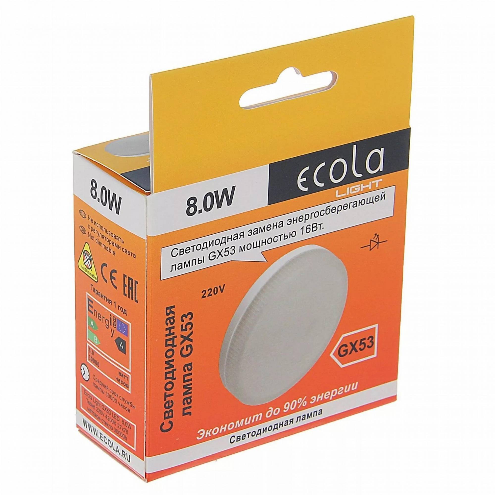 Ecola лампа GX53 8.0 Вт (4200К)