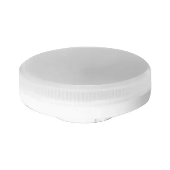 Светодиодная лампочка в форме таблетки с цоколем GX53 обладает мощностью в 6 Вт. Цветовая температура — 4200К, т.е. дневной белый свет. Изделие рассчитано на использование в сети с переменным напряжением в 175-265В.