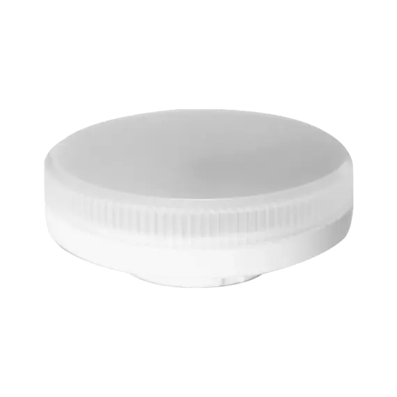 Светодиодная лампочка в форме таблетки с цоколем GX53 обладает мощностью в 10 Вт. Цветовая температура — 4200К (дневной белый свет). Изделие рассчитано на использование в сети с переменным напряжением в 175-265В.
