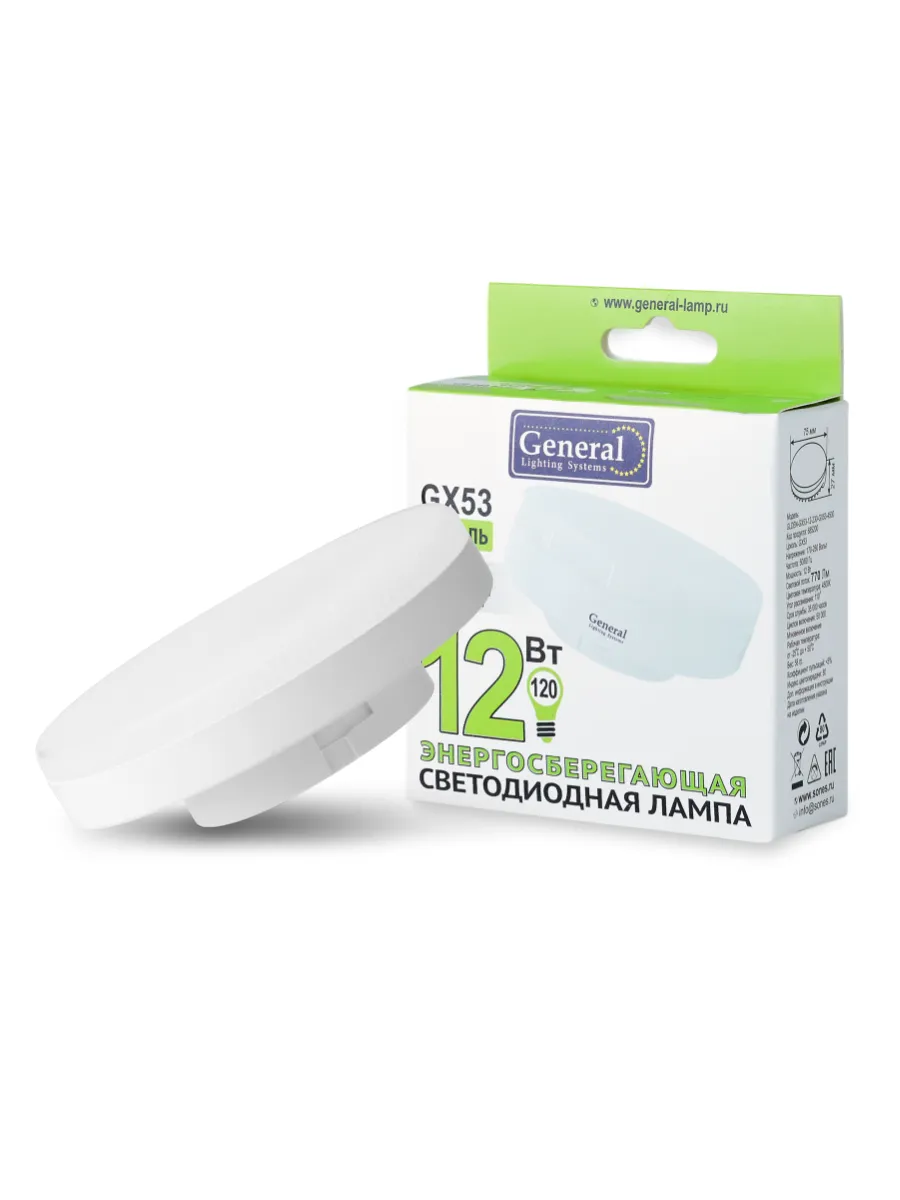 Лампа GENERAL GLDEN-GX53 (12W, 2700K, теплый, индив.упак.)