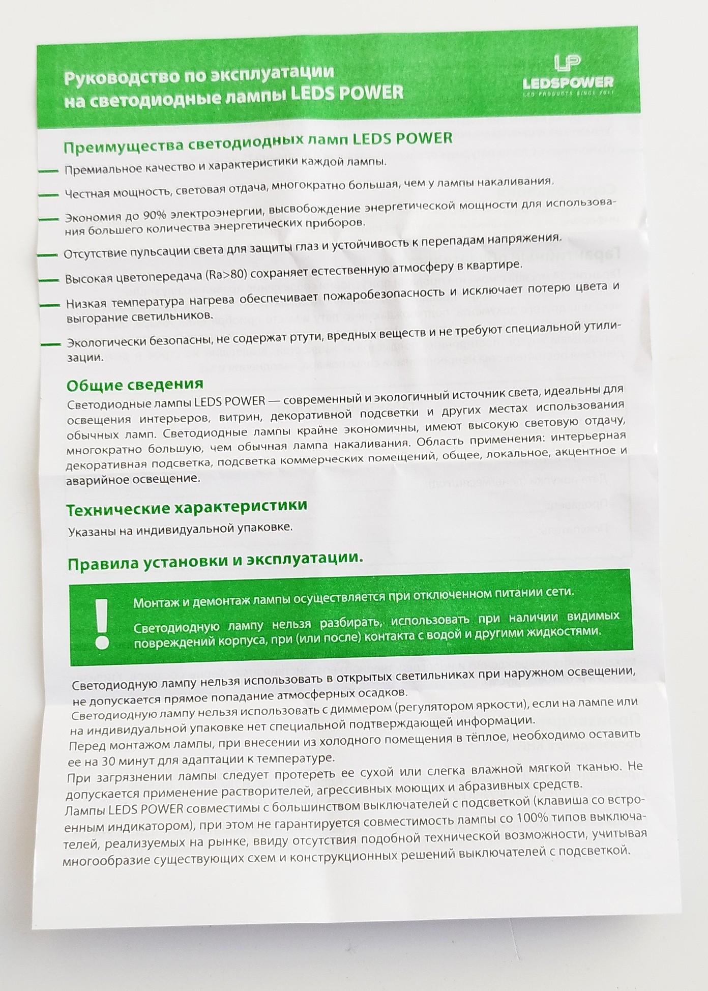 - Честная мощность, световая отдача, многократно большая, чем у лампы накаливания.