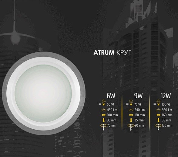 LED панель круглая ATRUM, 9Вт, 4200K,640ЛМ, D120*90*35