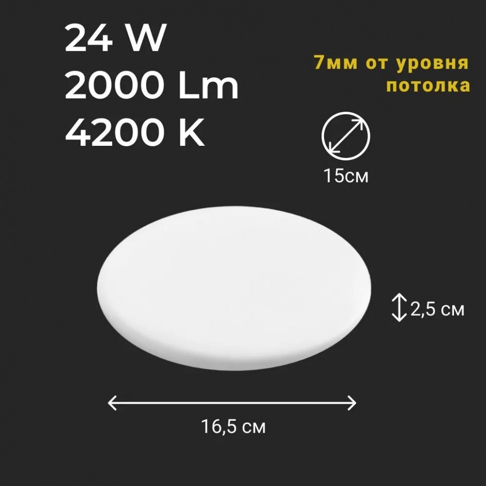 LED панель круглая SKY, 24Вт, 4200К, 2000Лм, D165*150*25