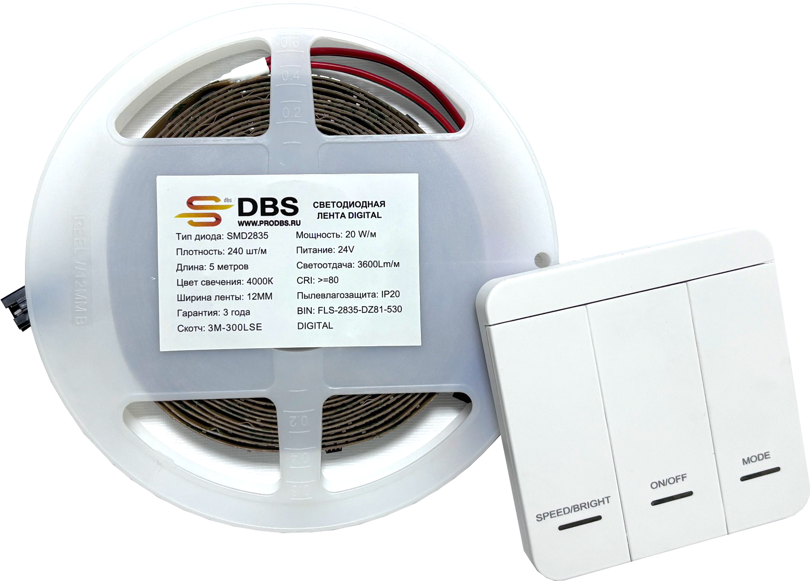 Лента светодиодная 200LUX DR 2835, 20w, 24V, 4000K, 160lm, 240led, CRI83, 10мм, IP20 Вода
