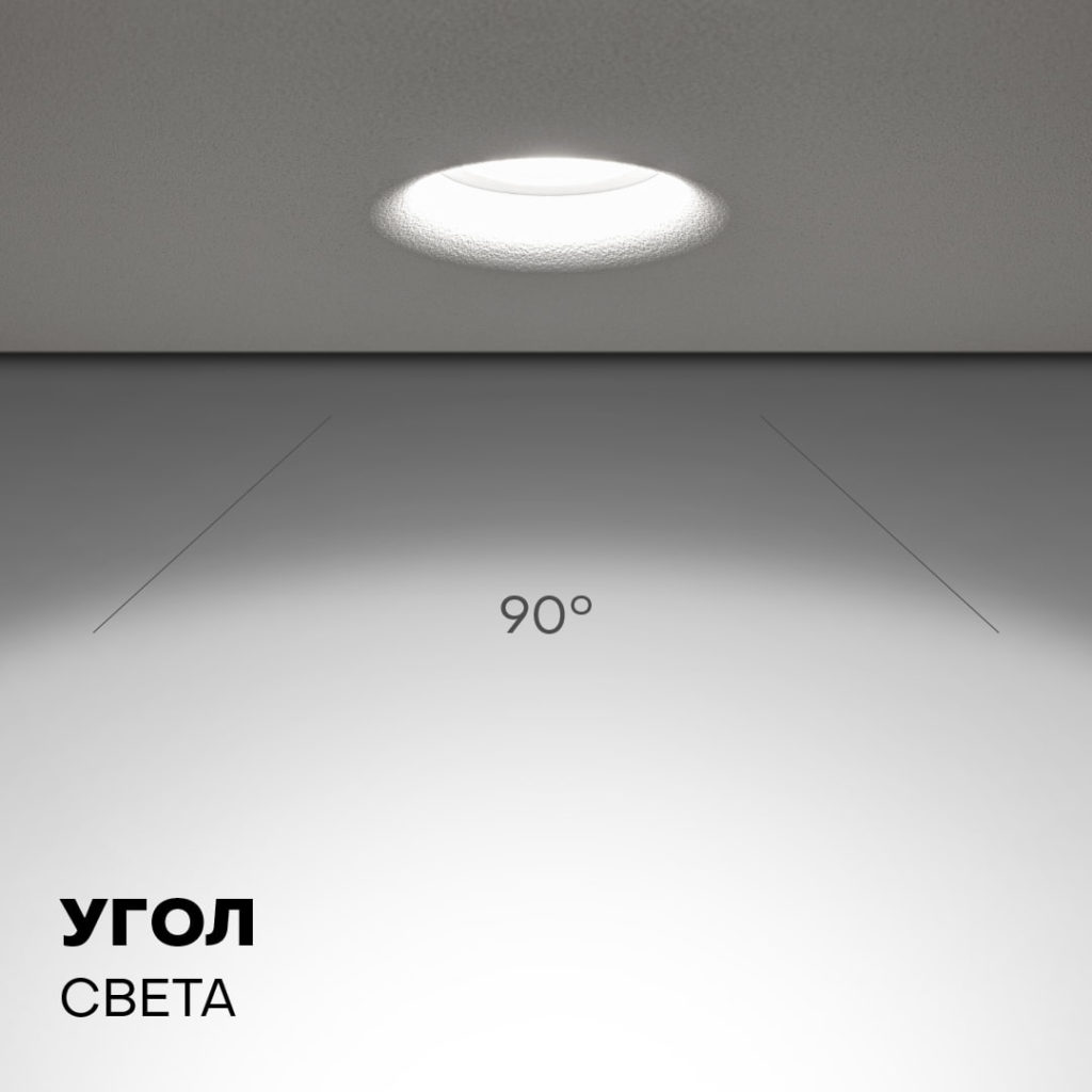 Угол светового пучка светильника — 90С. Монтаж занимает пару минут и не требует дополнительных закладных. Рекомендуем использовать для устройства лампы с цоколем GU10 мощностью до 9 Вт.