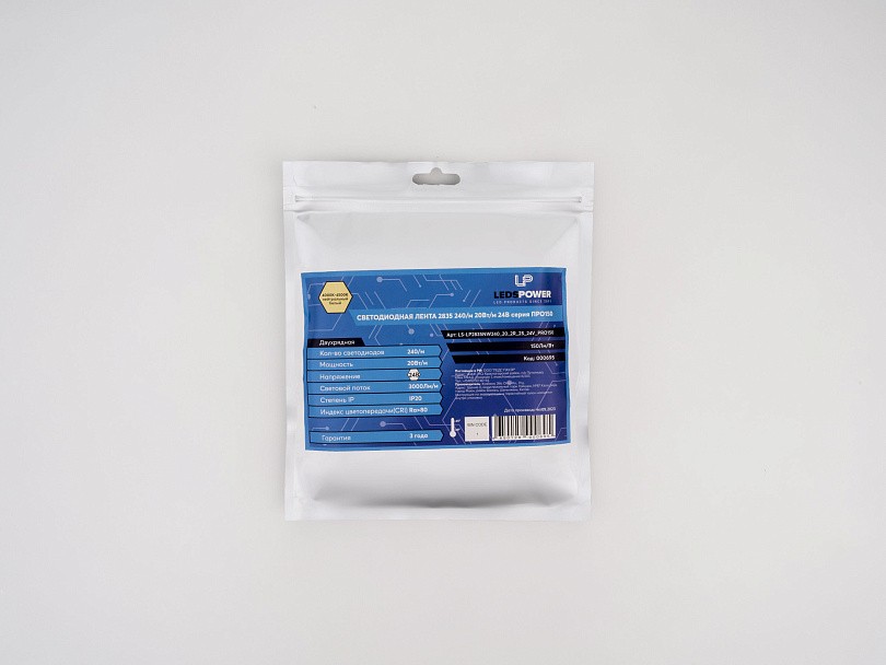 Двухрядная светодиодная лента LP 2835 с плотностью 240 светодиодов на метр обеспечивает яркое и равномерное освещение. Мощность 20 Вт на метр и рабочее напряжение 24В гарантируют стабильную и долговечную работу. Цветовая температура 4000К даёт нейтральный белый свет, подходящий для жилых и коммерческих пространств. Лента легко монтируется благодаря самоклеящемуся слою и возможностью разрезки для удобной установки.