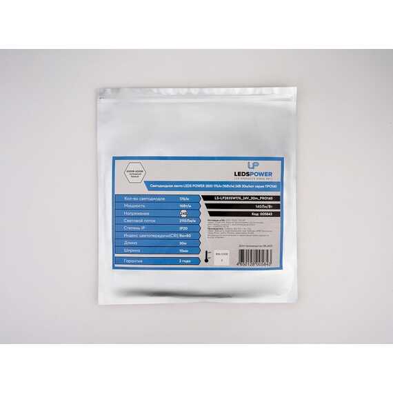 Светодиодная лента LP 2835 с плотностью 176 светодиодов на метр и мощностью 16 Вт на метр создаёт холодный белый свет с цветовой температурой 6000К. Этот яркий свет отлично подходит для рабочих зон, офисов и других мест, где требуется максимальная освещённость. Лента работает при напряжении 24В, что гарантирует стабильность и долговечность. Простота монтажа обеспечивается самоклеящимся слоем, что делает её удобным решением для любого проекта.