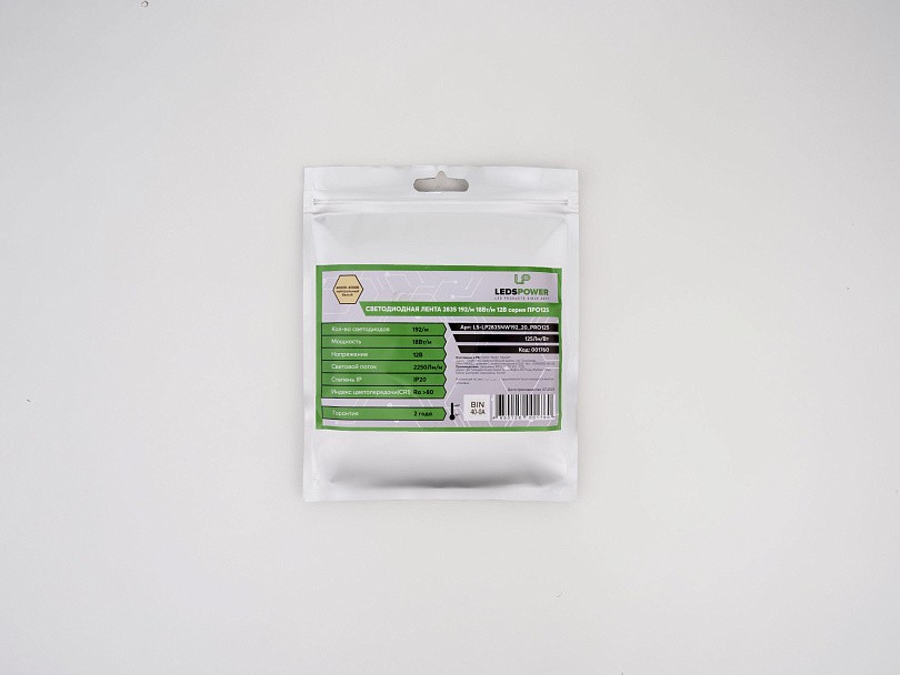 Светодиодная лента LP 2835 с плотностью 192 светодиодов на метр обеспечивает равномерное и яркое освещение. Мощность ленты составляет 18 Вт на метр, что позволяет эффективно освещать помещения и создавать декоративные акценты. Рабочее напряжение ленты — 24В, что гарантирует стабильную работу и минимальный нагрев.