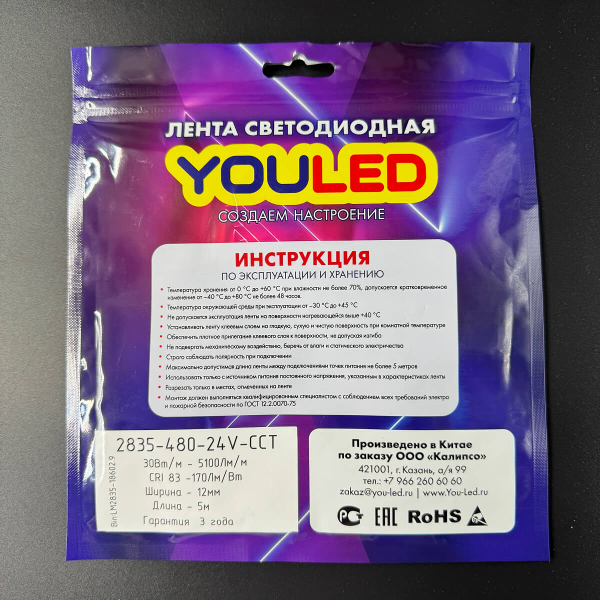 (313) Лента светодиодная двухрядная YouLED ССТ 30Вт 24В 1800-6000К 480д/м
