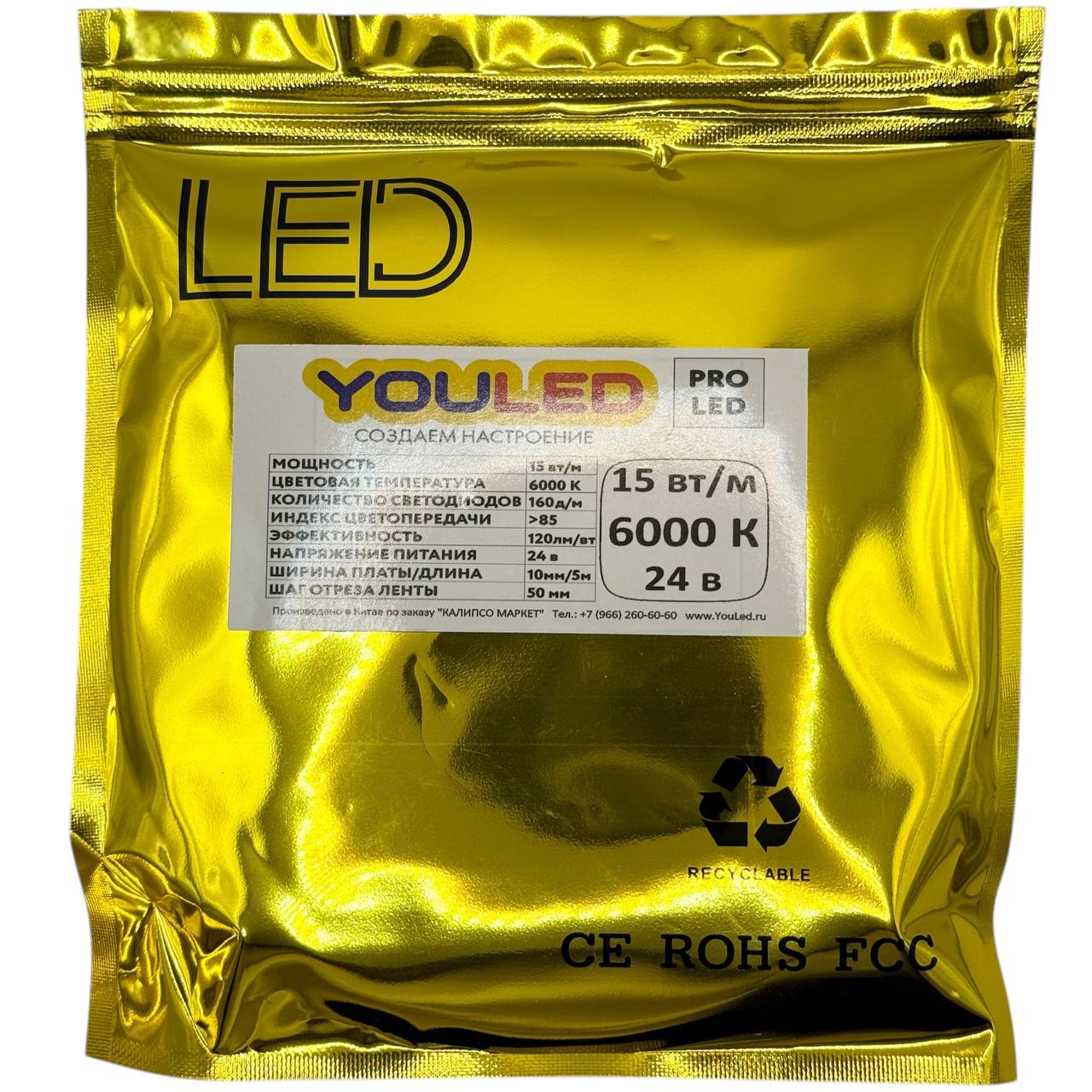 (316) Лента светодиодная YouLED PROLED 15Вт 24В 6000К 160д/м