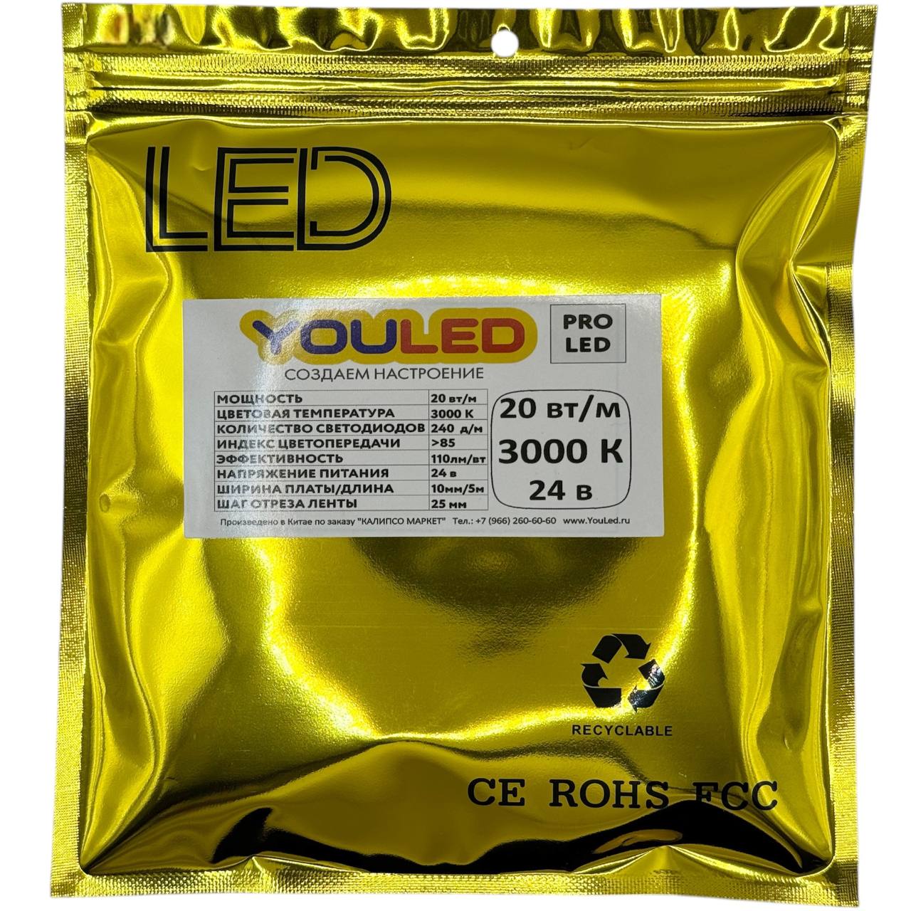 (317) Лента светодиодная YouLED PROLED 20Вт 24В 3000К 240д/м