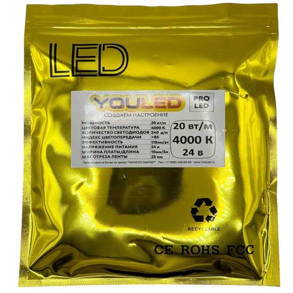 (318) Лента светодиодная YouLED PROLED 20Вт 24В 4000К 240д/м