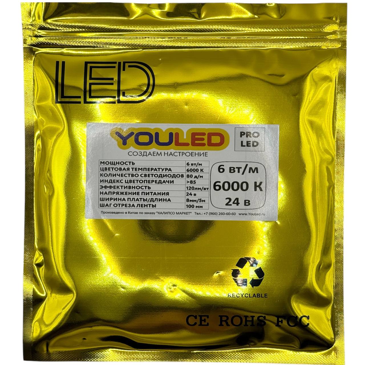 (322) Лента светодиодная YouLED PROLED 6Вт 24В 6000К 80д/м