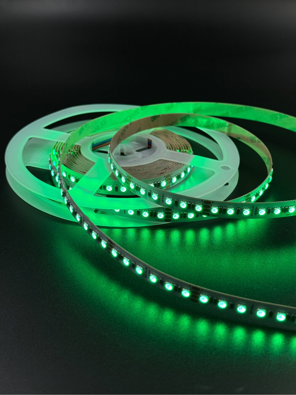 RGB (мультицвет) с возможностью менять цвет свечения. Используется для декоративной подсветки потолков, стен, ниш, различных интерьерных решений. Использованы светодиоды типа 3535 и плата шириной 10мм, что гораздо удобнее в монтаже в парящие профили.