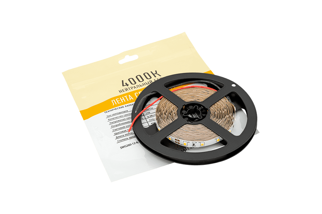 Лента 2835, 60 LED/м, 6,3Вт/м, 12В , IP20, Цвет: Нейтральный белый