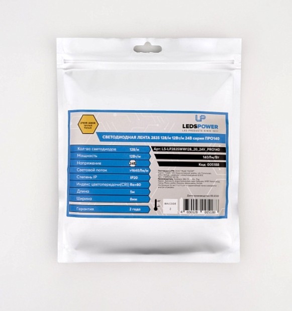 Лента светод. LEDS POWER, 12W/24V/3000K/128led, Серия PRO140 (5м.)
