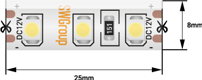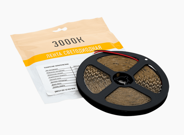Лента светод. SWG 3M, 9,6W/12V/3000K/120led (5м.) Тёплый Белый