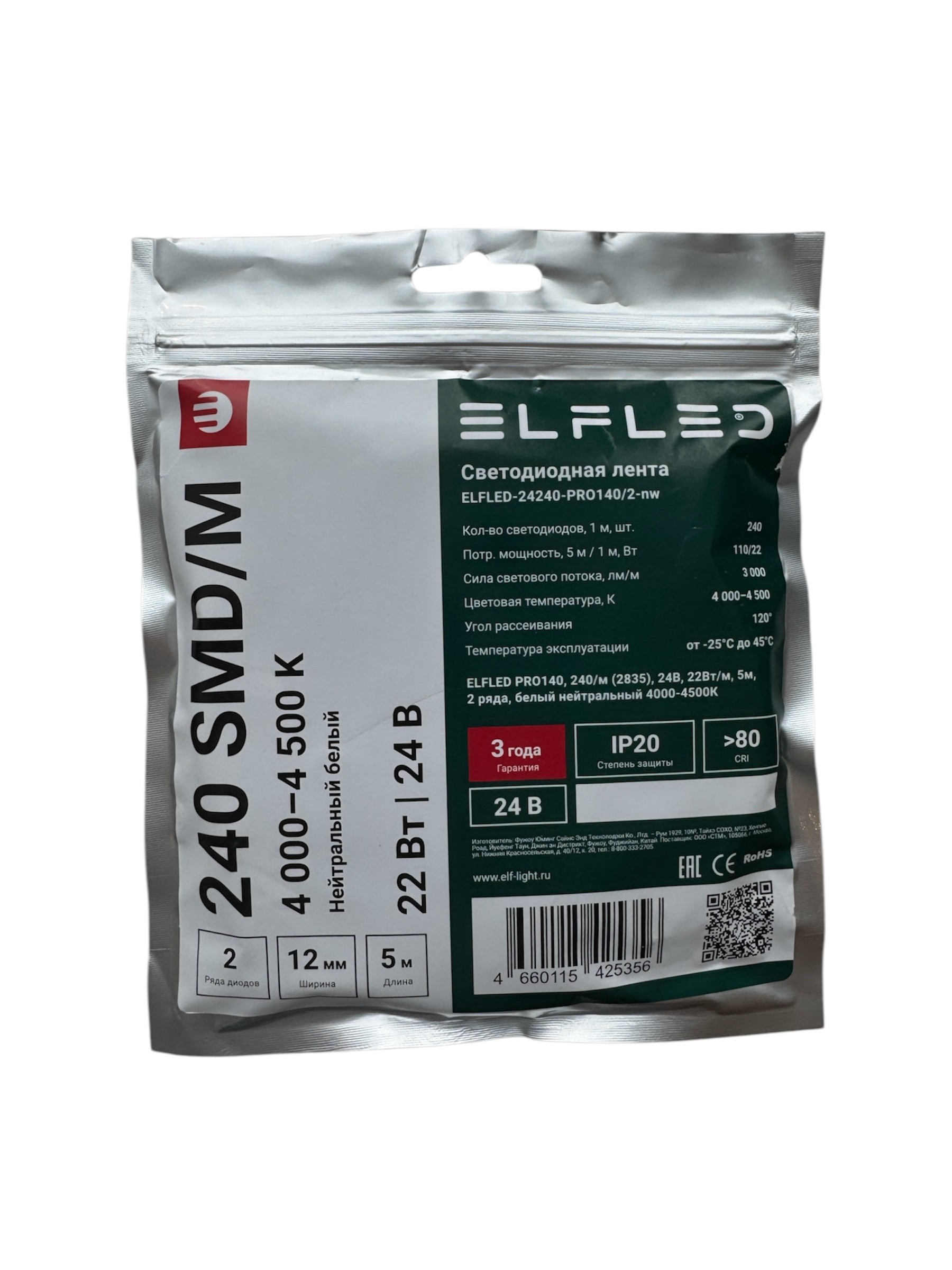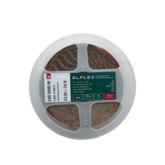 Лента светодиодная ELFLED PRO140 ДВУХРЯД., 22Вт/м, 24В, нейтр., 4000-4500К, 240д/м, 5м