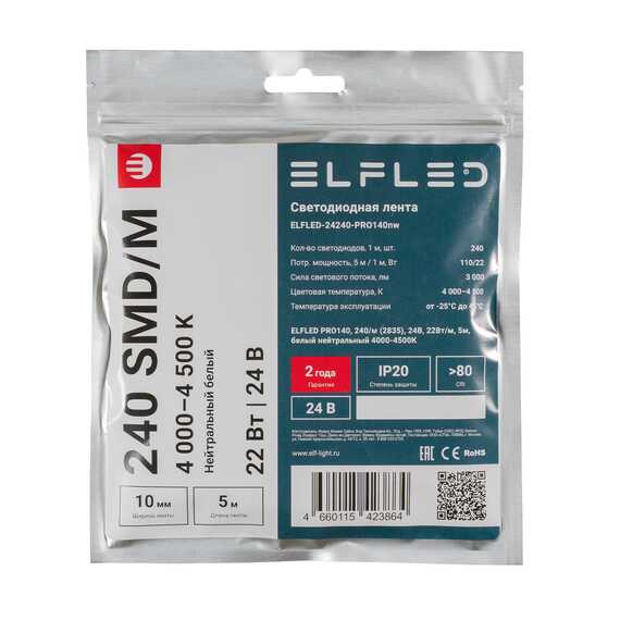 Светодиодная лента ELFLED PRO140 22w /240 точек/4000-4500K/24 V