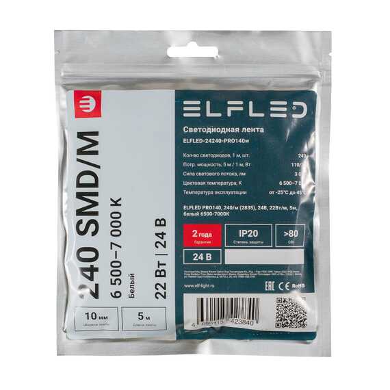 Светодиодная лента ELFLED PRO140 22w /240 точек/6500-7000K/24 V