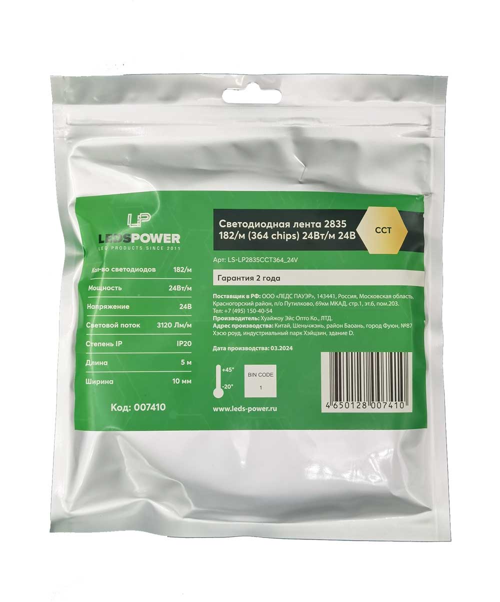 Светодиодная лента LEDS POWER 2835 182д/м (364 chips) max 24Вт/м 24В CCT