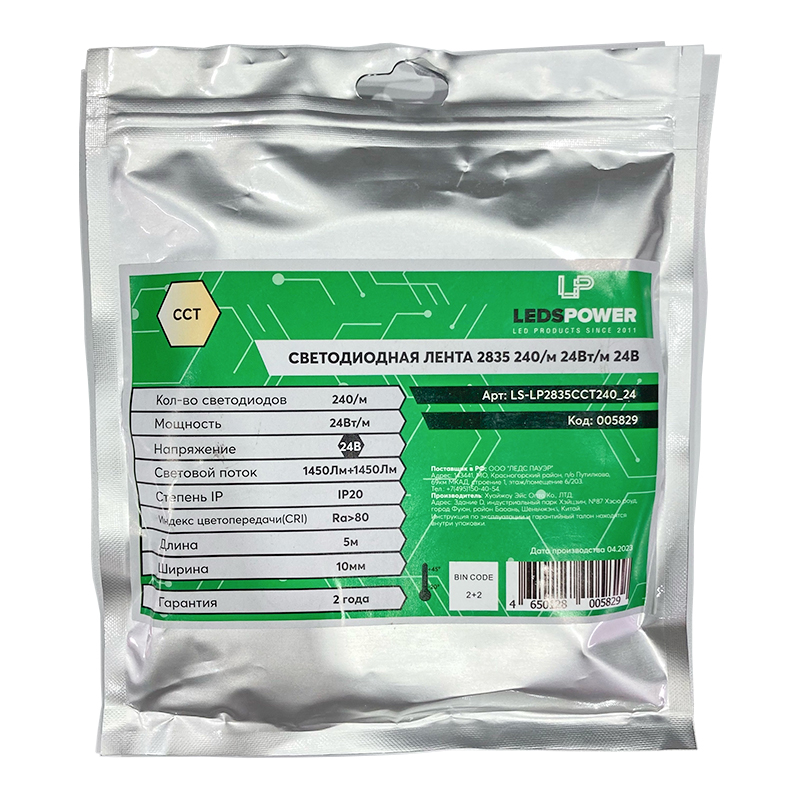 Светодиодная лента LEDS POWER 2835 238/м (476 chips) max 30Вт/м 24В CCT