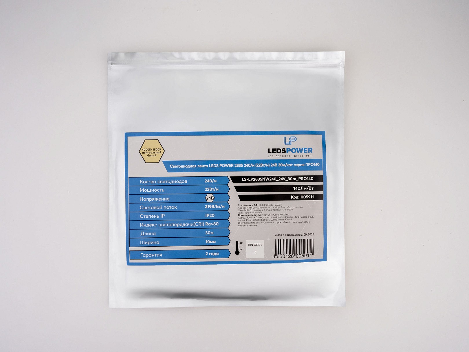 Светодиодная лента LP 2835 240/м (22Вт/м) 24В нейтральная 30м/кат