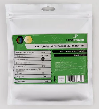Светодиодная лента LEDS POWER 5050 60д/м, 19,2Вт/м 24В RGB+CCT позволяет создавать как яркую цветную подсветку, так и регулировать оттенок белого света, выбирая между тёплыми, нейтральными и холодными тонами. Такая лента обычно имеет степень защиты IP20 и предназначена для использования внутри сухих помещений.