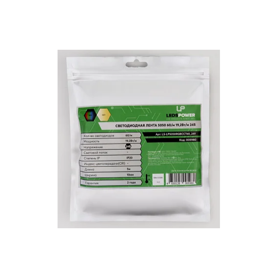 5980 Светодиодная лента LEDS POWER 5050 60д/м, 19.2Вт/м 24В RGB+CCT