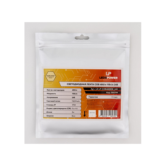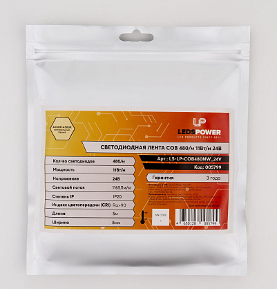 5799 Светодиодная лента LEDS POWER COB 11Вт/м, 24В, 480/м, нейтральная