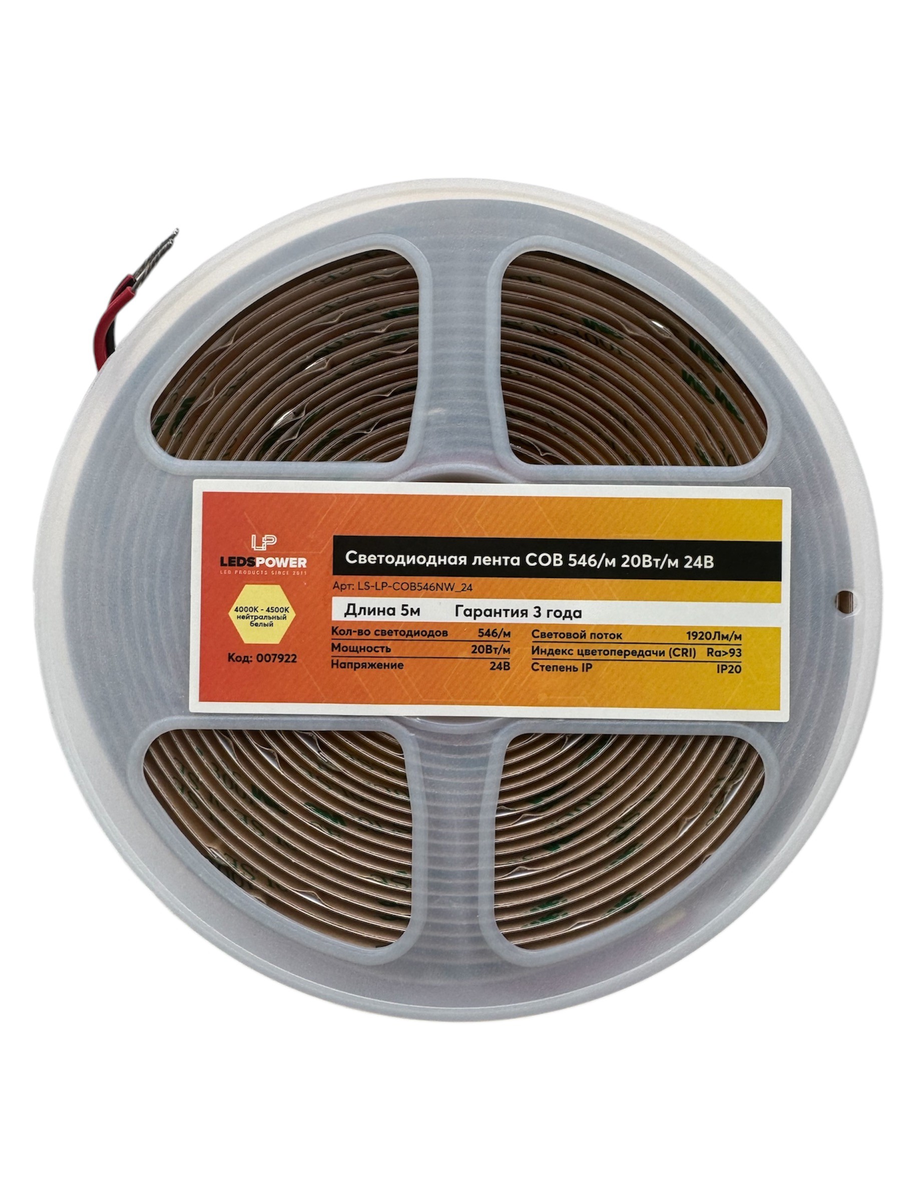 Светодиодная лента LEDS POWER (серия COB), 5м, 24В, IP20, 546 LED/m, нейтральный белый.