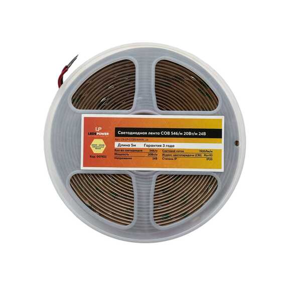 Светодиодная лента LEDS POWER COB 20Вт/м, 24В, 546/м, нейтральная