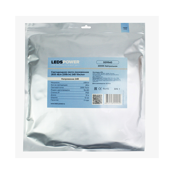 9940 Светодиодная лента LEDS POWER ЛИНЗОВАННАЯ 20Вт/м, 24В, 48/м, нейтральная (БУХТА 10м)