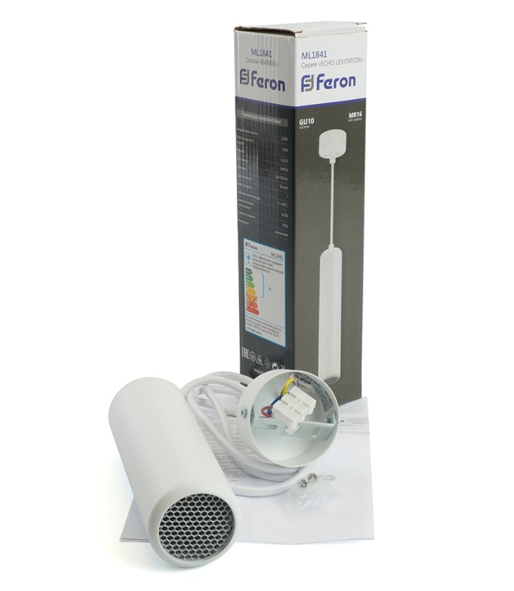 Светильник Подвесной FERON, ML1841(48395) ECHO, антибликовая сетка, под лампу MR16/GU10, Белый (54х54х160)