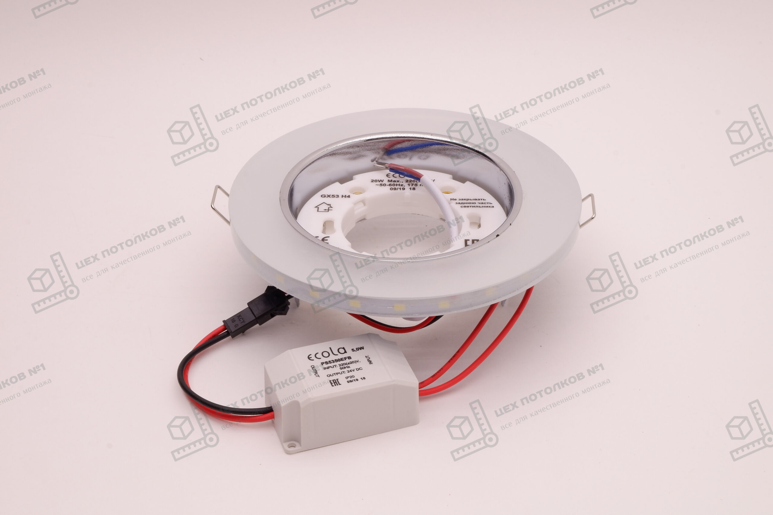 Светильник Ecola GX53 Glass Стекло Круг с подсв. хром - мат SL53RNECH