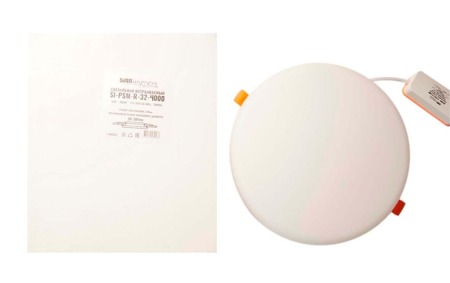 Светильник светодиодный регулируемый (до 205мм) 32Вт 4000K 2800Лм SI-PSM-R-32-4000 SignImpress. Механизм регулировки монтажного диаметра позволяет решить проблему несовпадения диаметра установочного отверстия при замене одних светильников на другие. Светильник встраиваемый не содержат ртутьсодержащих веществ, поэтому он не представляет опасности в случае выхода из строя или разрушения.