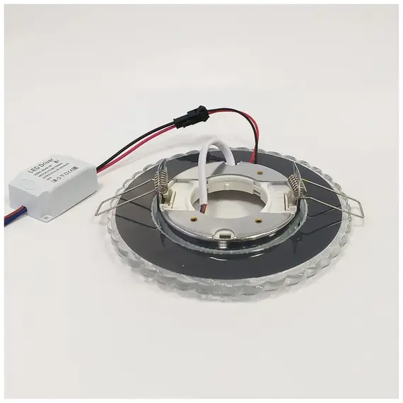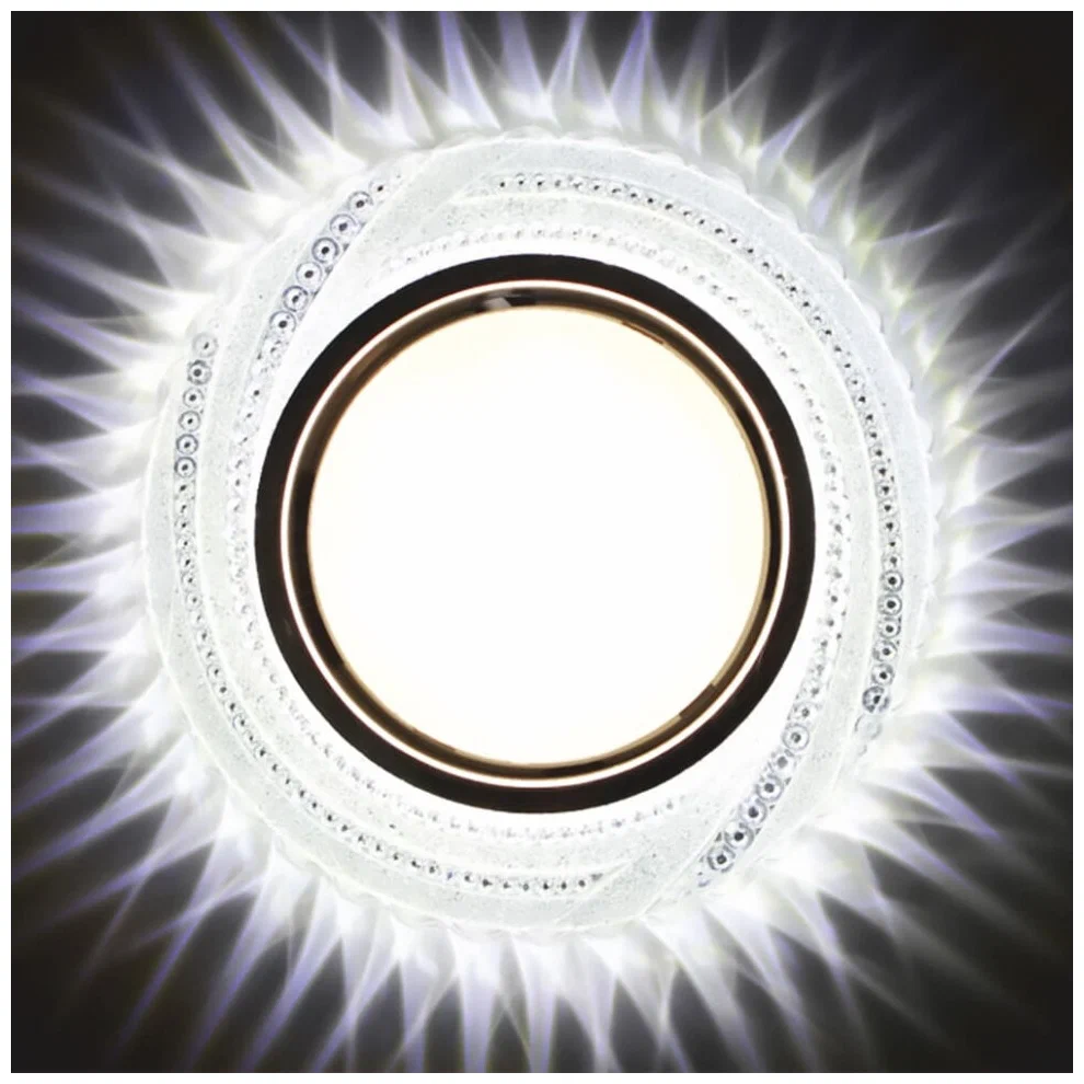 Светильник потолочный встраиваемый с LED подсветкой 5w 4200K, прозрачный хром, круг, потолочный GX53 без лампы.