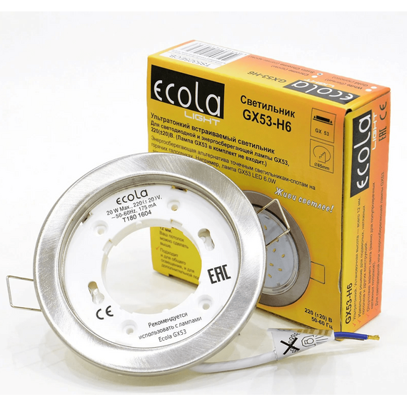 Светильник GX53 H4 сатин-хром Экола предназначен для освещения жилых и общественных помещений, а также для индивидуальной подсветки различных объектов интерьера. Это идеальное решение для дизайнерских подвесных и натяжных потолков. Светильник является альтернативой точечным галогенным светильникам.