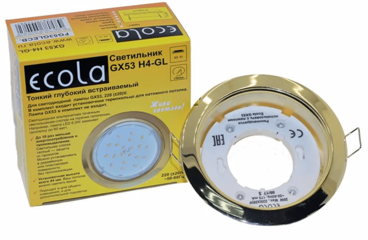 Светильники GX53 являются самым удачным вариантом для натяжных и подвесных потолков. Это идеальная альтернатива светильникам-спотам на горячих галогенках. Простая замена ламп, светильник не нужно вынимать из потолка. До 10 раз меньше энергопотребление и тепловыделение (светильник почти не нагревается). Отсутствует риск прожогов в натяжных потолках. Можно устанавливать в пластиковую или деревянную поверхность без дополнительной термоизоляции.